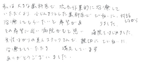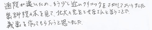 通院が遠いため、もう少し近いクリニックをさがしておりました。