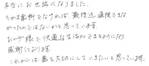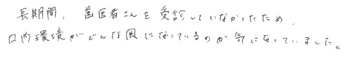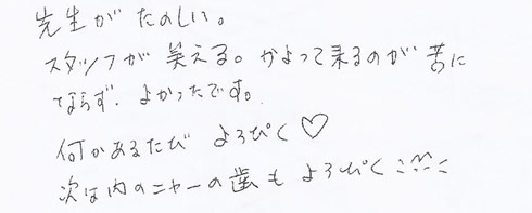 きちんと通院され、礼儀正しい素敵なお嬢さんでした。