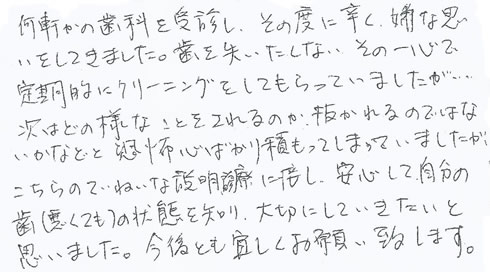 どうぞ、ご自分の歯を大事にしてあげて下さいね。
