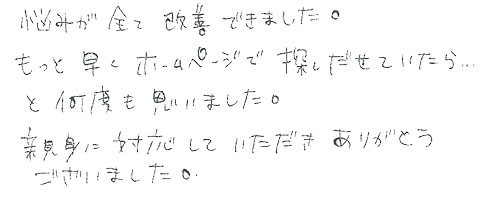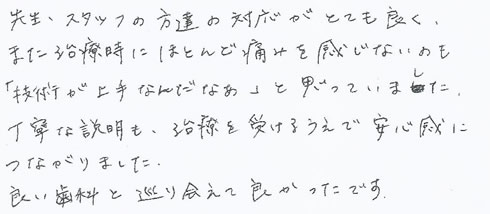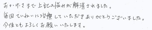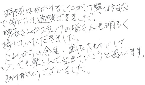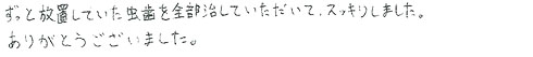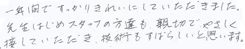 経過観察を含めて1年以上の通院をして頂きました。そのかわり、