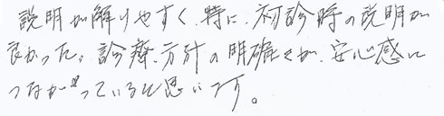 診せて頂こうと思います。気さくで明るく、非常に協調的な患者さまで、