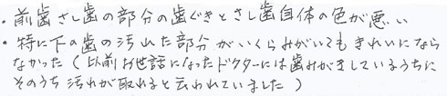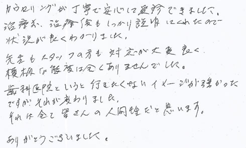 しっかり歯石除去も行い、清掃もマスターして頂きました。