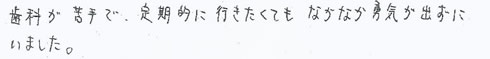 お話させて頂きました。歯医者は緊張すると思いますが、