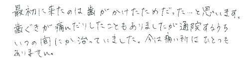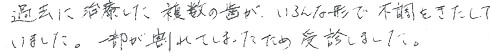 長びいた歯もあり、症状がなくても、あけて良かったと思うことが