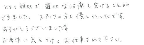 ここは、皆さんとても対応が良く、かよいやすかったです。
