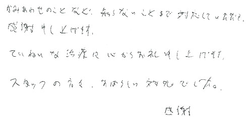 感謝の気持ちでいっぱい。本当にありがとうございました。
